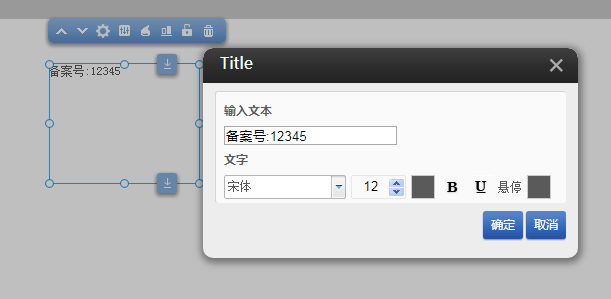③点击样式设置,可以输入备案号相关信息, 并且可以设置文字的样式,包括悬停样式