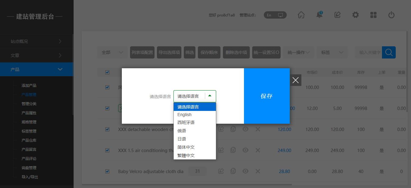使用场景:不同的语言站点的产品,现在可以通过批操作统一复制